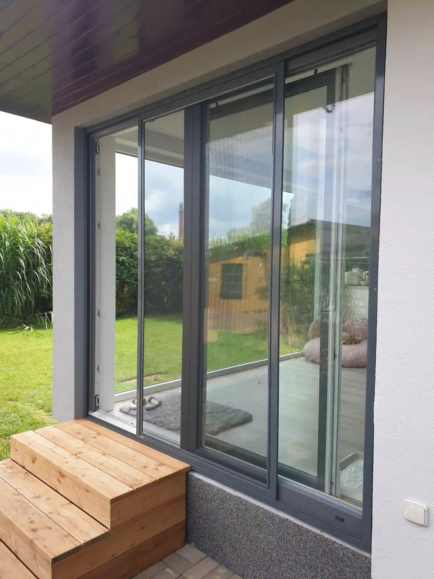 Posuvné - téměř neviditelné praktické řešení, jednoduše se posouvají po kolejničkách. Velmi elegantní řešení při nedostatku místa pro otvírání klasických dveřních sítí. Vhodné do velkých otvorů ( HS Portálů )